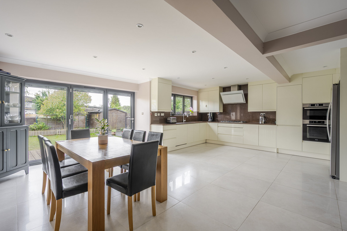 Step inside and youll find a thoughtfully designed interior, flooded with natural light. The open-plan kitchen/dining area is the heart of the homecomplete with Quartz countertops, premium Bosch and Miele appliances, and a sleek Schuco aluminium bi-folding door system with internal blinds, connecting seamlessly to the garden. Underfloor heating and a new Worcester boiler ensure year-round comfort.