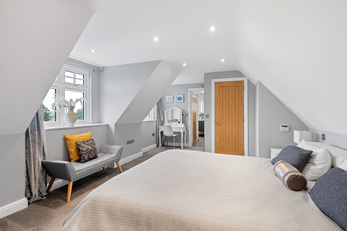The ground floor also includes two additional reception rooms, perfect for a study, playroom, or guest lounge, as well as a downstairs cloakroom and a spacious utility room. The attached large garage offers direct access to the house, adding practicality to luxury.