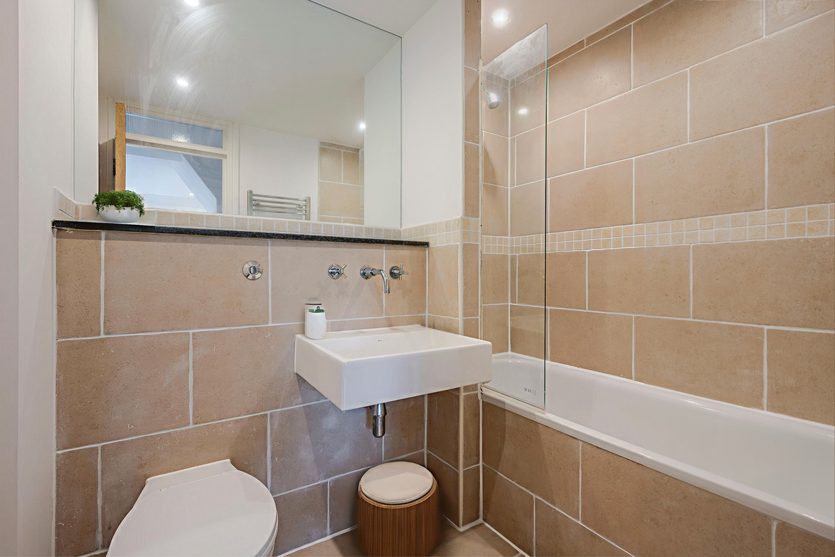 The family bathroom is fully tiled and includes a full-sized bathtub with a shower overhead clean, practical, and ready to enjoy from day one.
